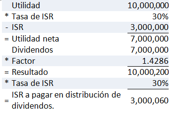Como antecedente, los dividendos y utilidades que no provengan de CUFIN, deberán pagar un ISR calculado al multiplicar el factor de 1.4286 y después pagar la tasa corporativa.