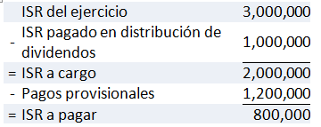 Cuando el impuesto del ejercicio sea menor que el monto que se hubiese acreditado en los pagos provisionales, únicamente se considerará acreditable contra el impuesto del ejercicio un monto igual a este último. Esto se traduce a que el contribuyente no puede acreditar más impuesto que el que realmente debe. Por ejemplo, si durante pagos provisionales, la cantidad de 100,000 pesos de ISR fue acreditada; pero al final del ejercicio el ISR a pagar resulta de 80,000 pesos, este precepto indica que el contribuyente únicamente podrá acreditar los 80,000 pesos por concepto de ISR pagado en distribución de dividendos.