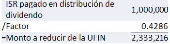 Esto es equivalente a cuando se calcula el ISR por distribución de dividendos. Nótese como el monto a reducir de la UFIN es equivalente al dividendo que se hubiese distribuido.